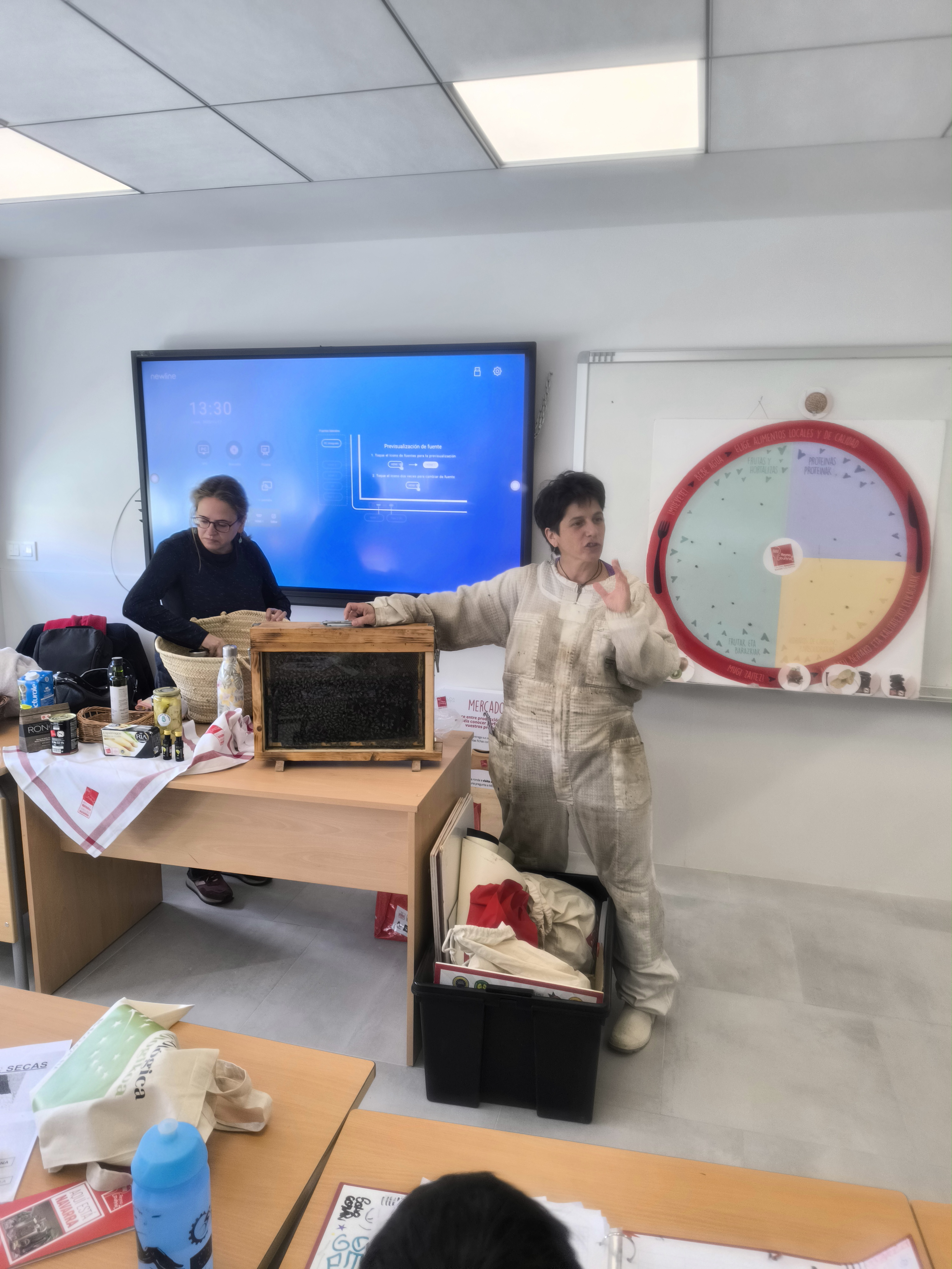 Además, tuvimos la suerte de contar con Erlanki, empresa ecológica comprometida con la sostenibilidad. Nos trajeron un panal de abeja negra y nos explicaron cómo trabajan estas increíbles polinizadoras, sus distintas funciones dentro de la colmena y la importancia de protegerlas.