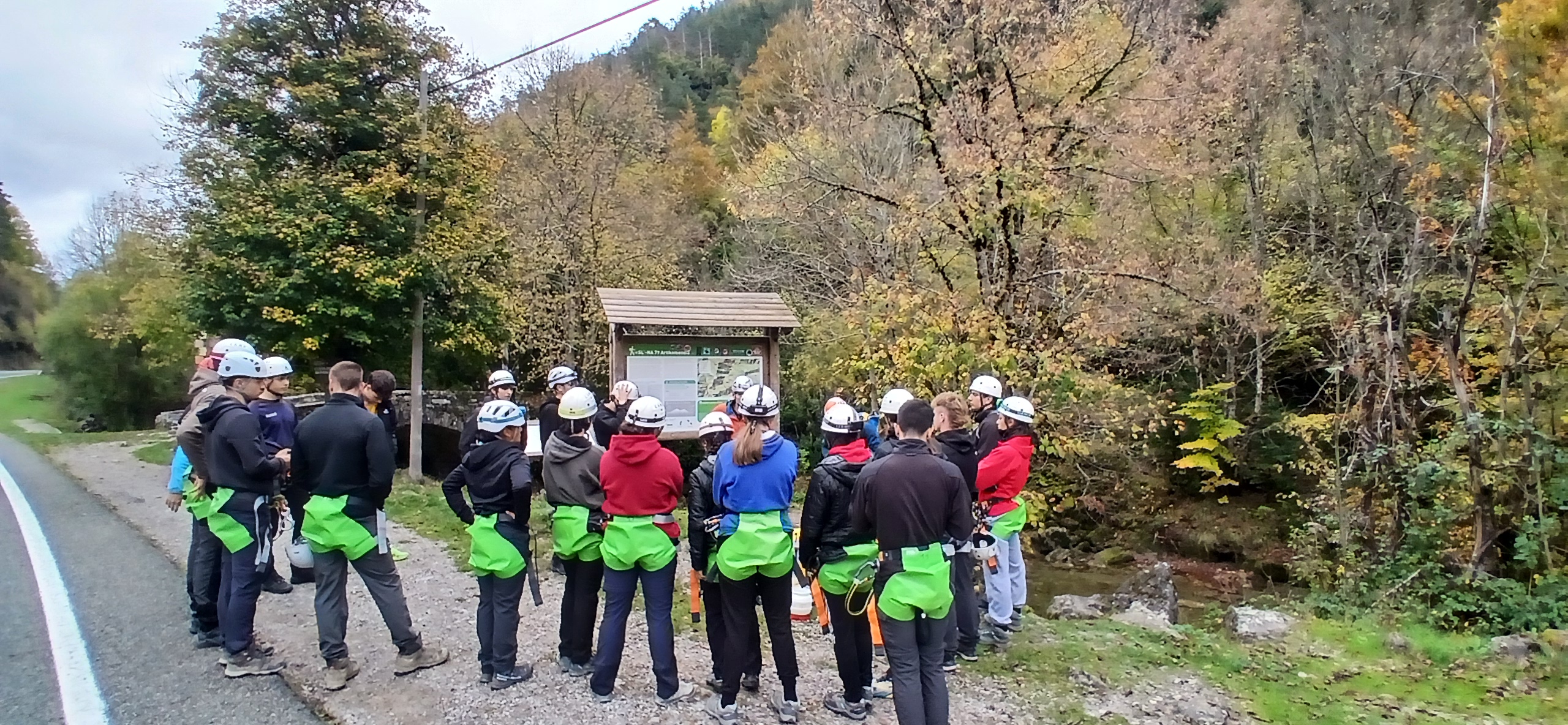 Los días 16 y 22 de octubre los grupos de 2º GM Guía en el medio natural y de tiempo libre (euskera y castellano, respectivamente), participamos en una salida de espeleología a la Cueva del Ibón, situada en las proximidades de Isaba, en el valle de Roncal (Navarra). La actividad, organizada como parte del módulo "Maniobras con cuerdas", tuvo como objetivo practicar las maniobras relacionadas con la espeleología, logística del material y desplazamiento, fomentar el trabajo en equipo, el contacto con la naturaleza y el conocimiento del medio geológico.