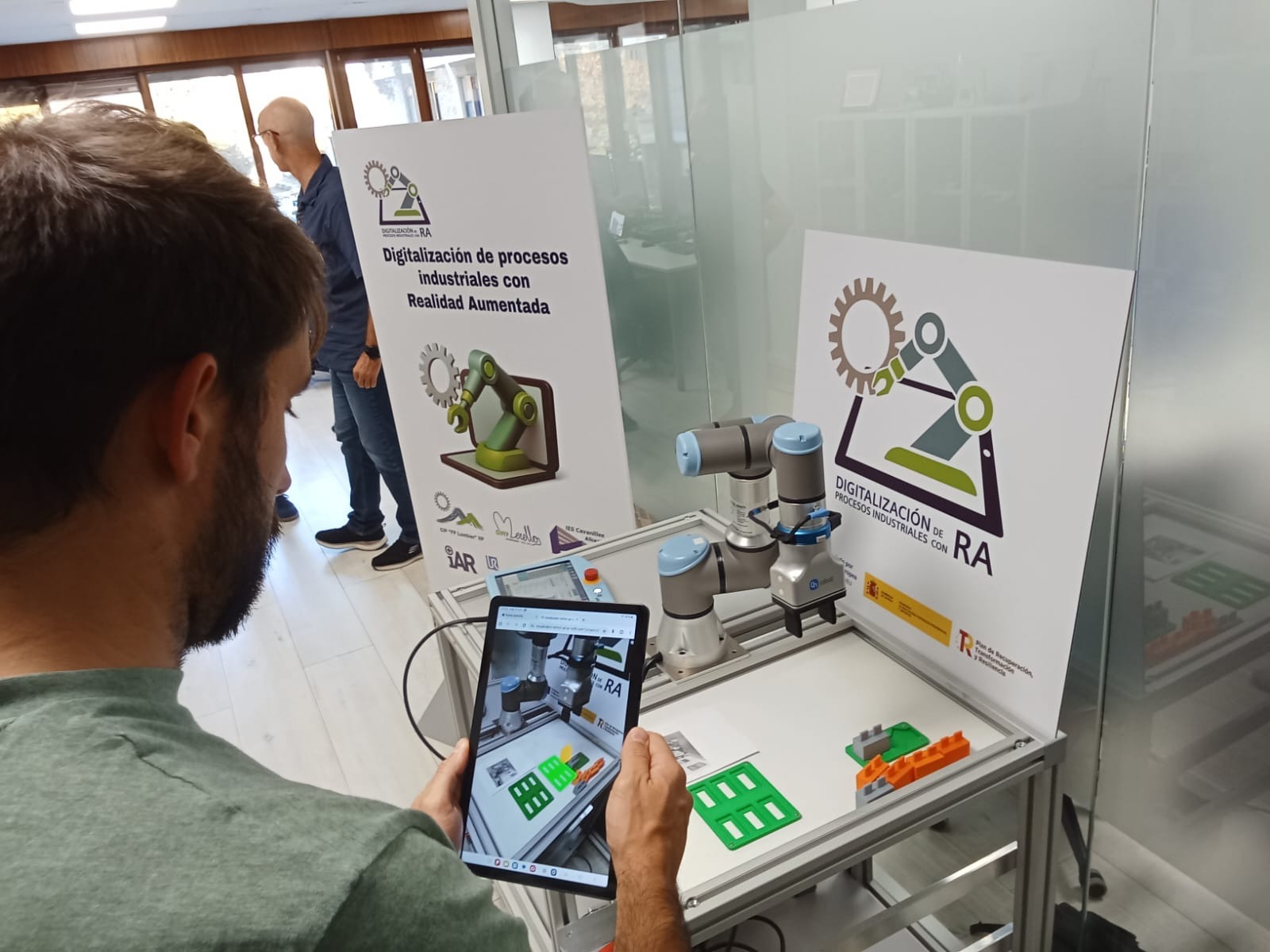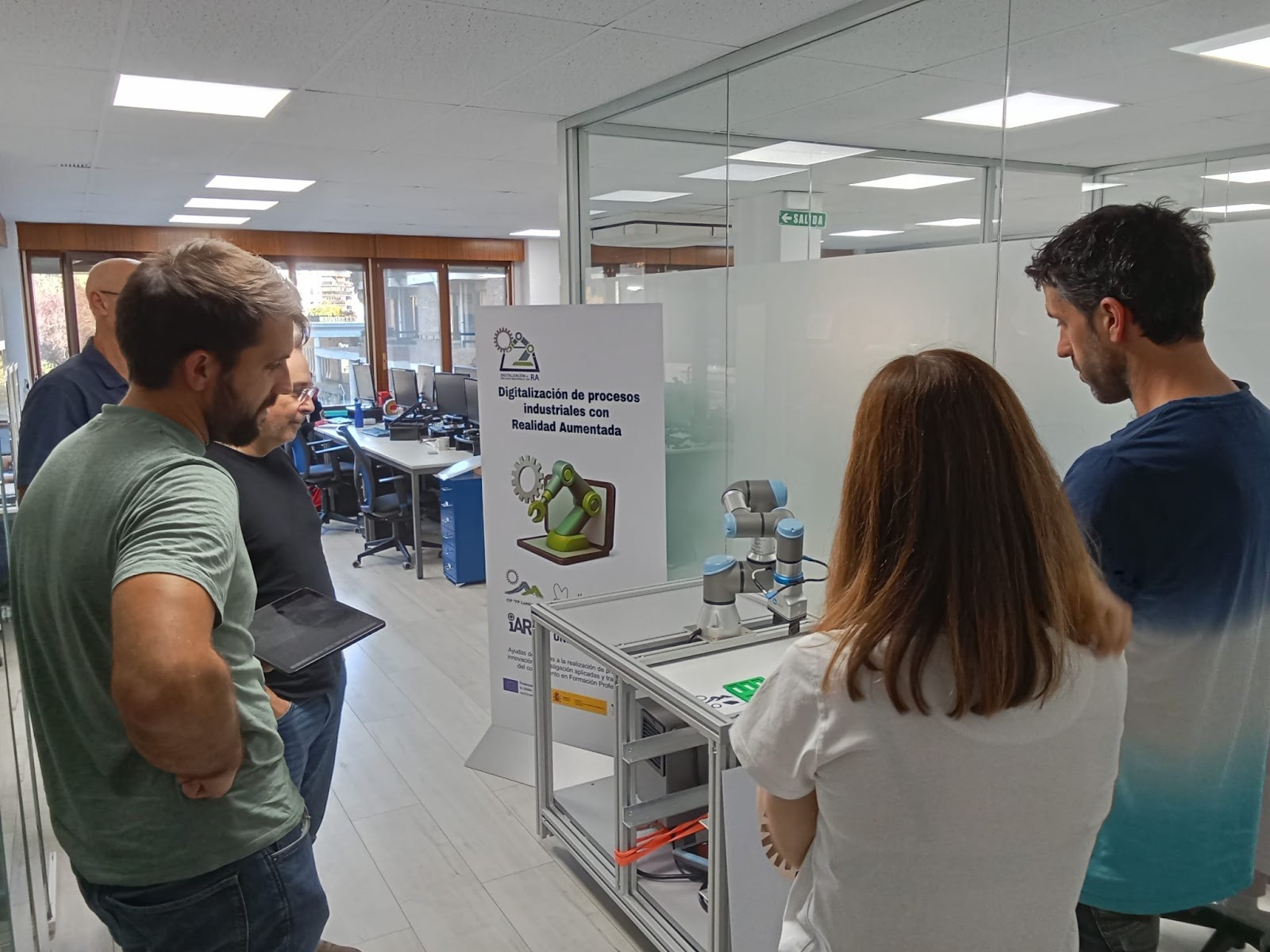 La jornada del 15 de octubre se desarrolló en las instalaciones de la empresa iAR, responsable del desarrollo de la parte de realidad aumentada del proyecto. Durante esta sesión, el profesorado participante recibió una formación específica sobre el uso de la aplicación creada, con demostraciones prácticas y explicaciones técnicas sobre su implementación en entornos industriales.